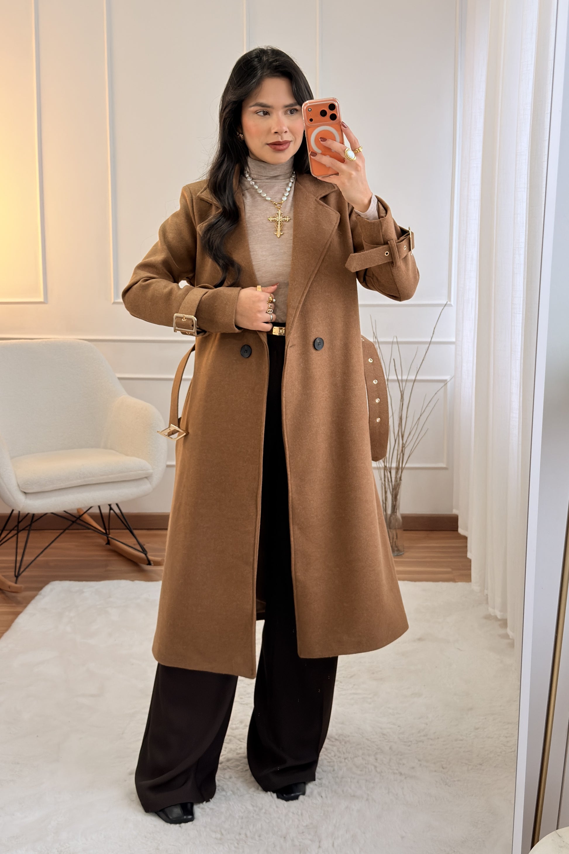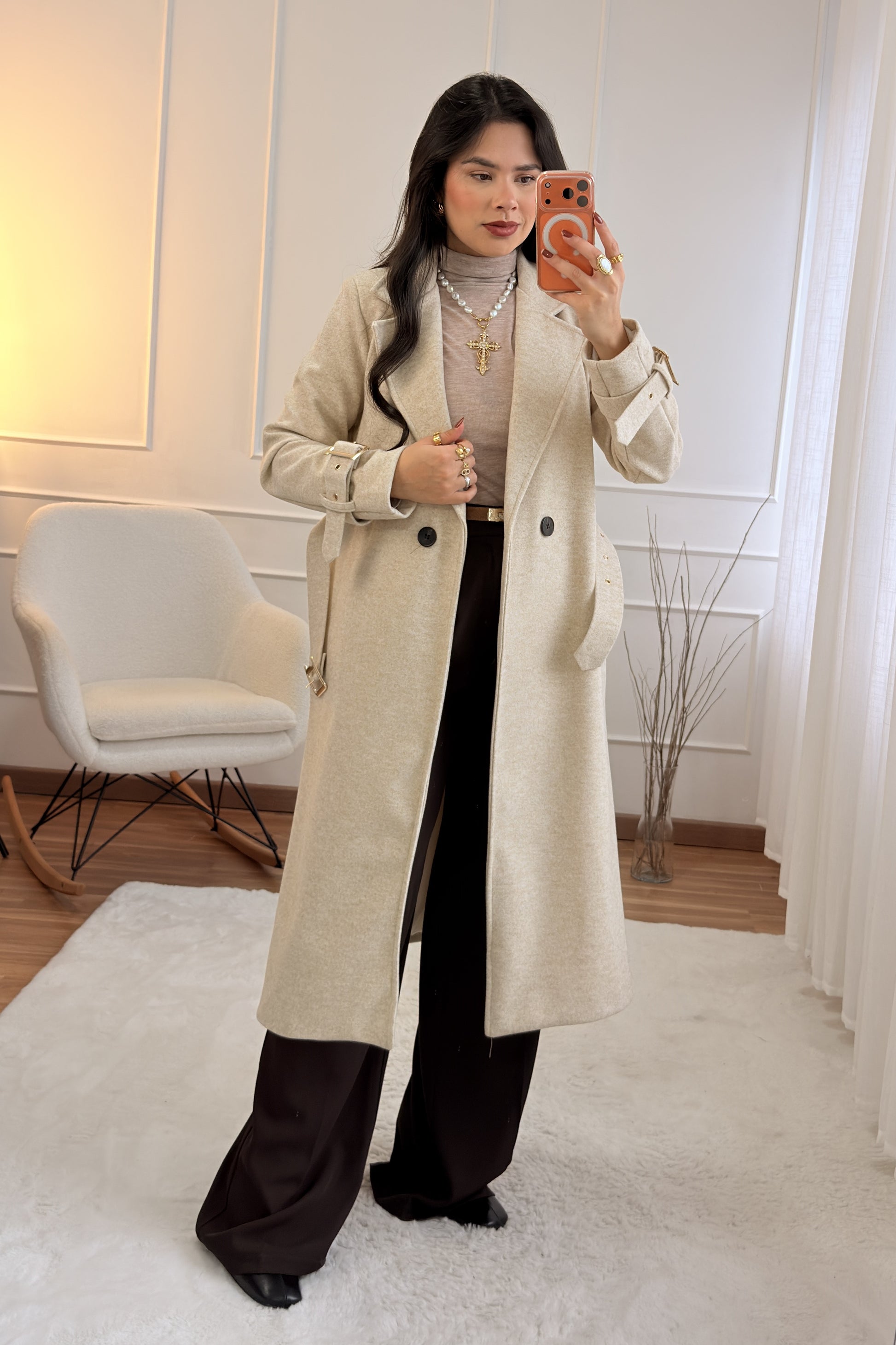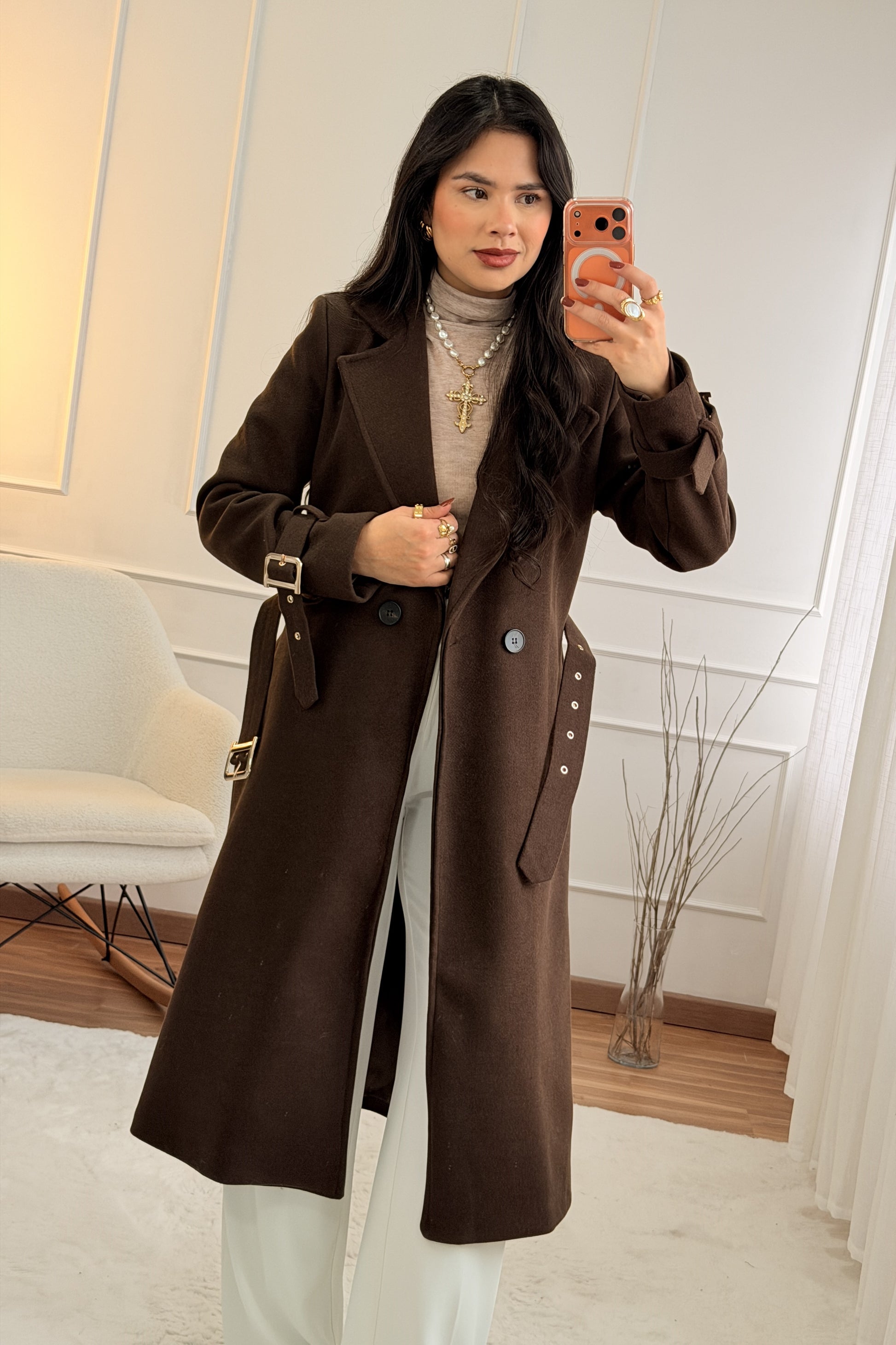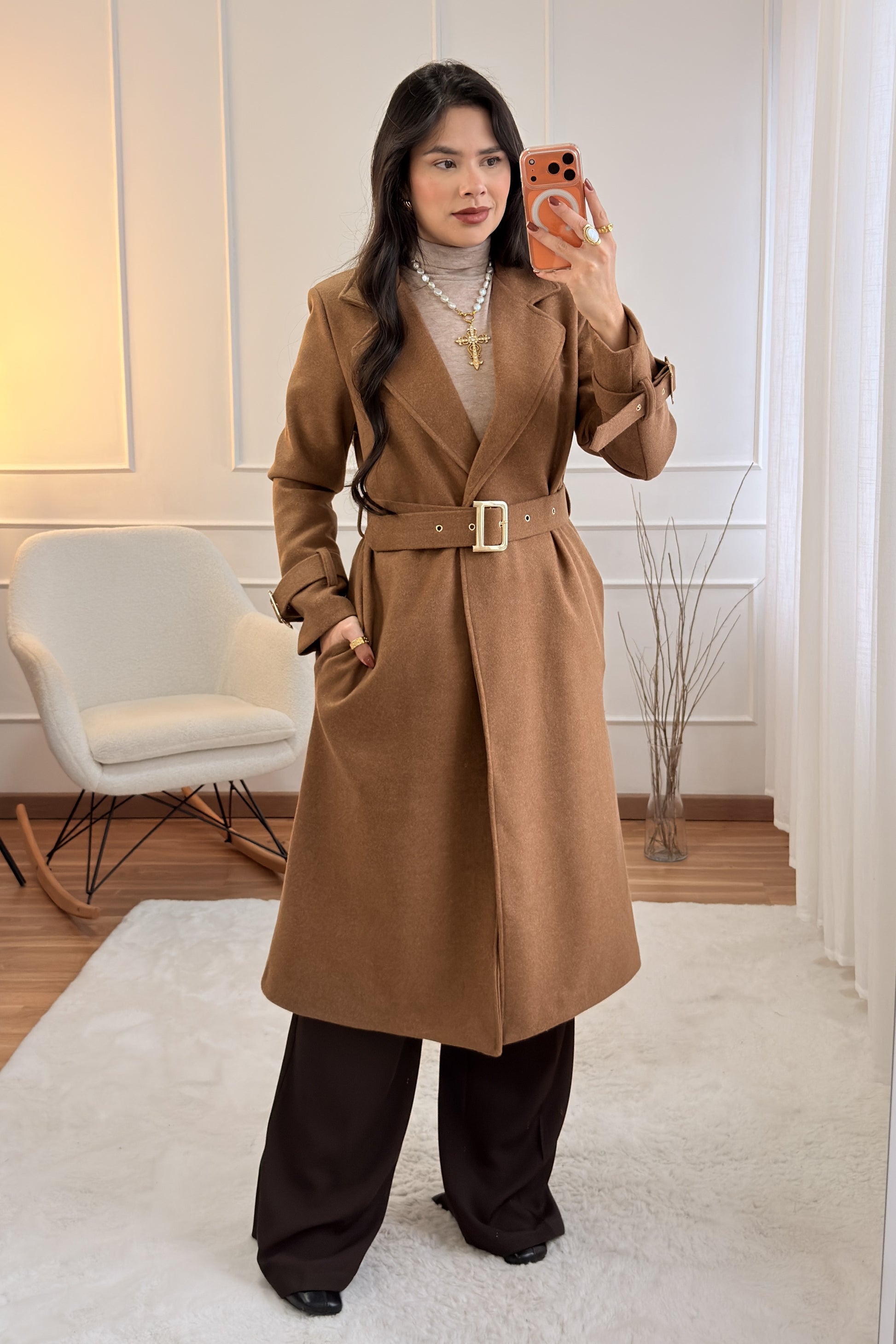 Lapelas estruturadas e punhos com tiras ajustáveis