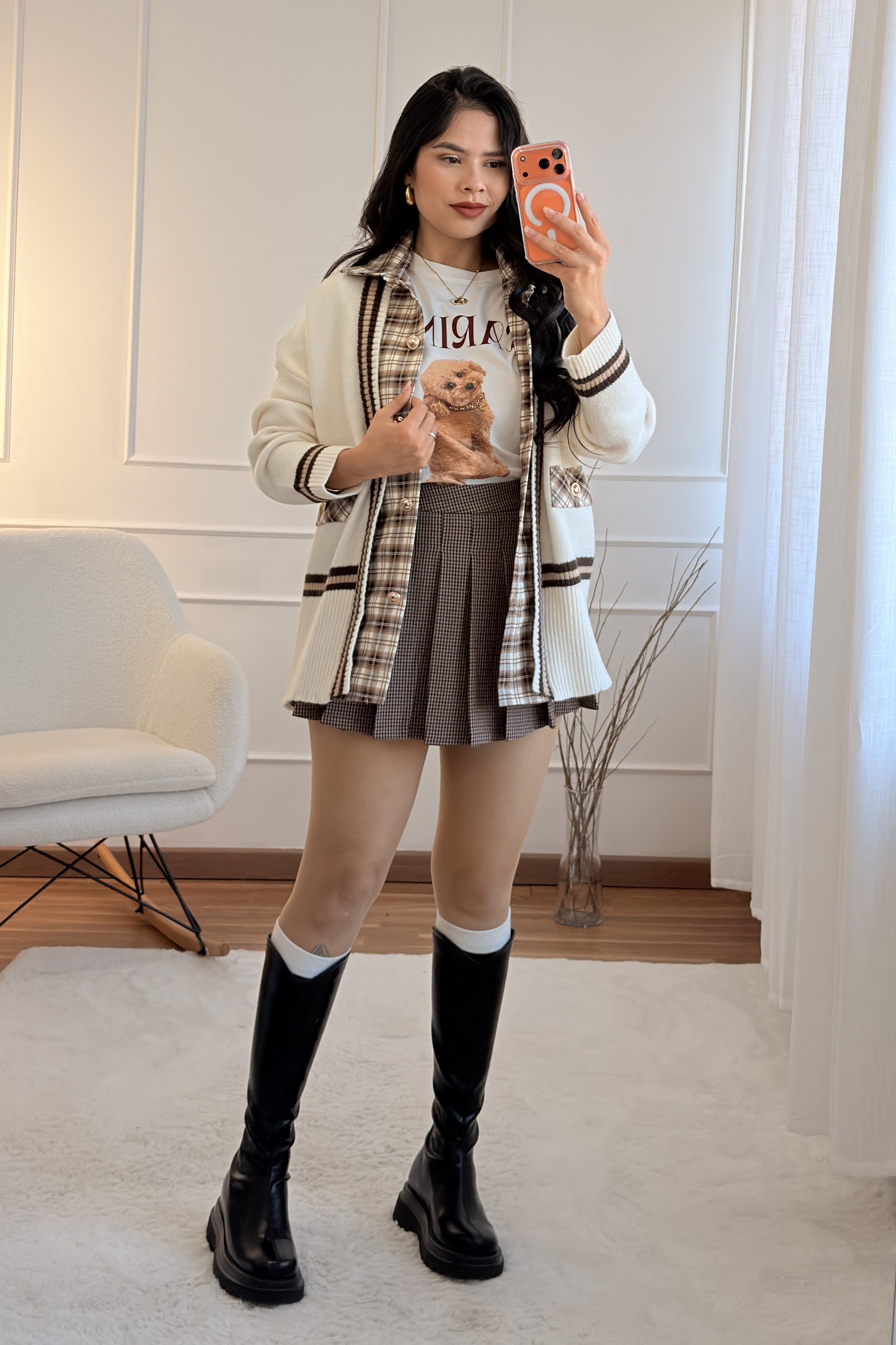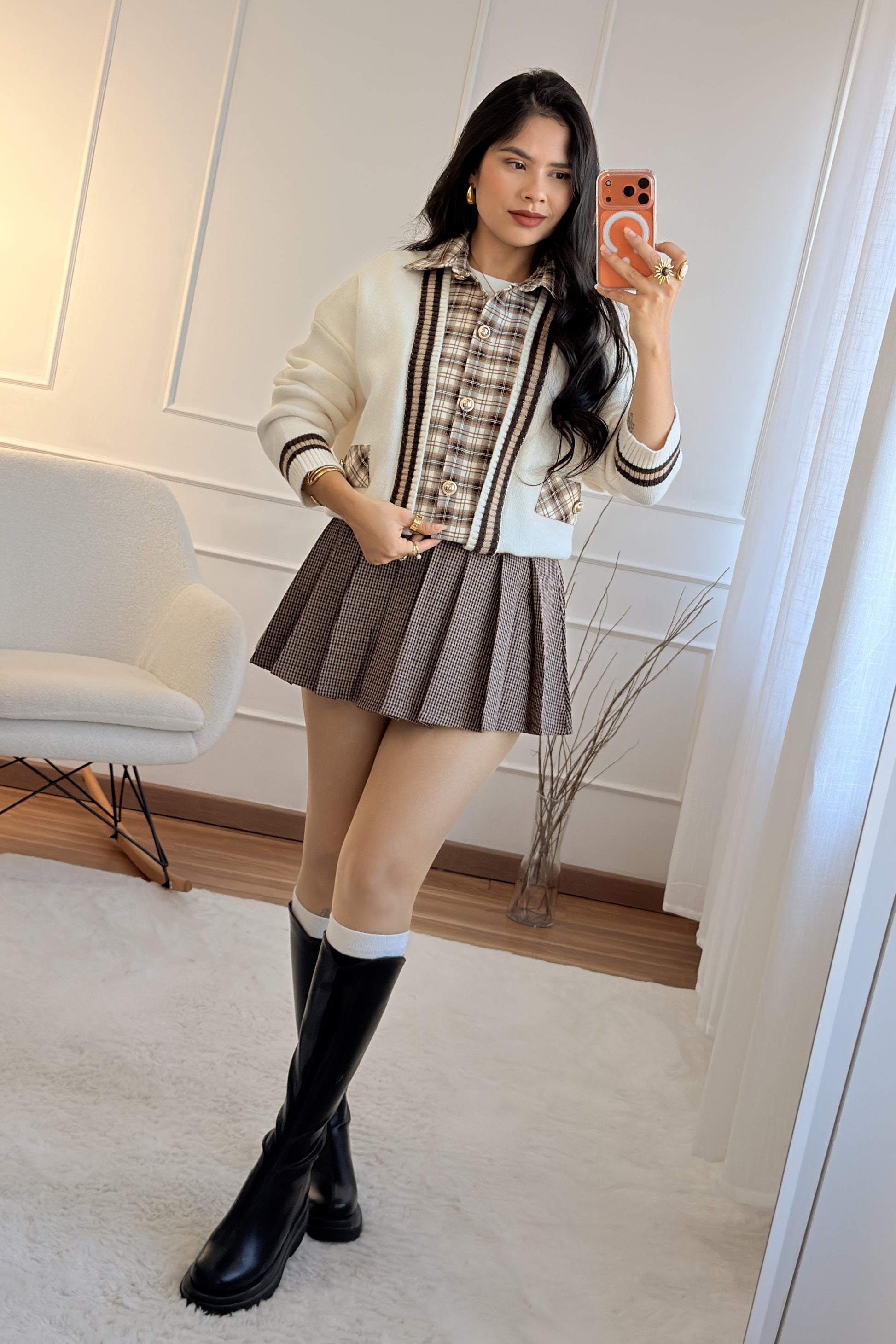 Casaco em malha de corte reto e estilo casual, com detalhes contrastantes nas bordas e bolsos frontais funcionais. O tecido é macio e confortável, ideal para compor looks elegantes e descontraídos.