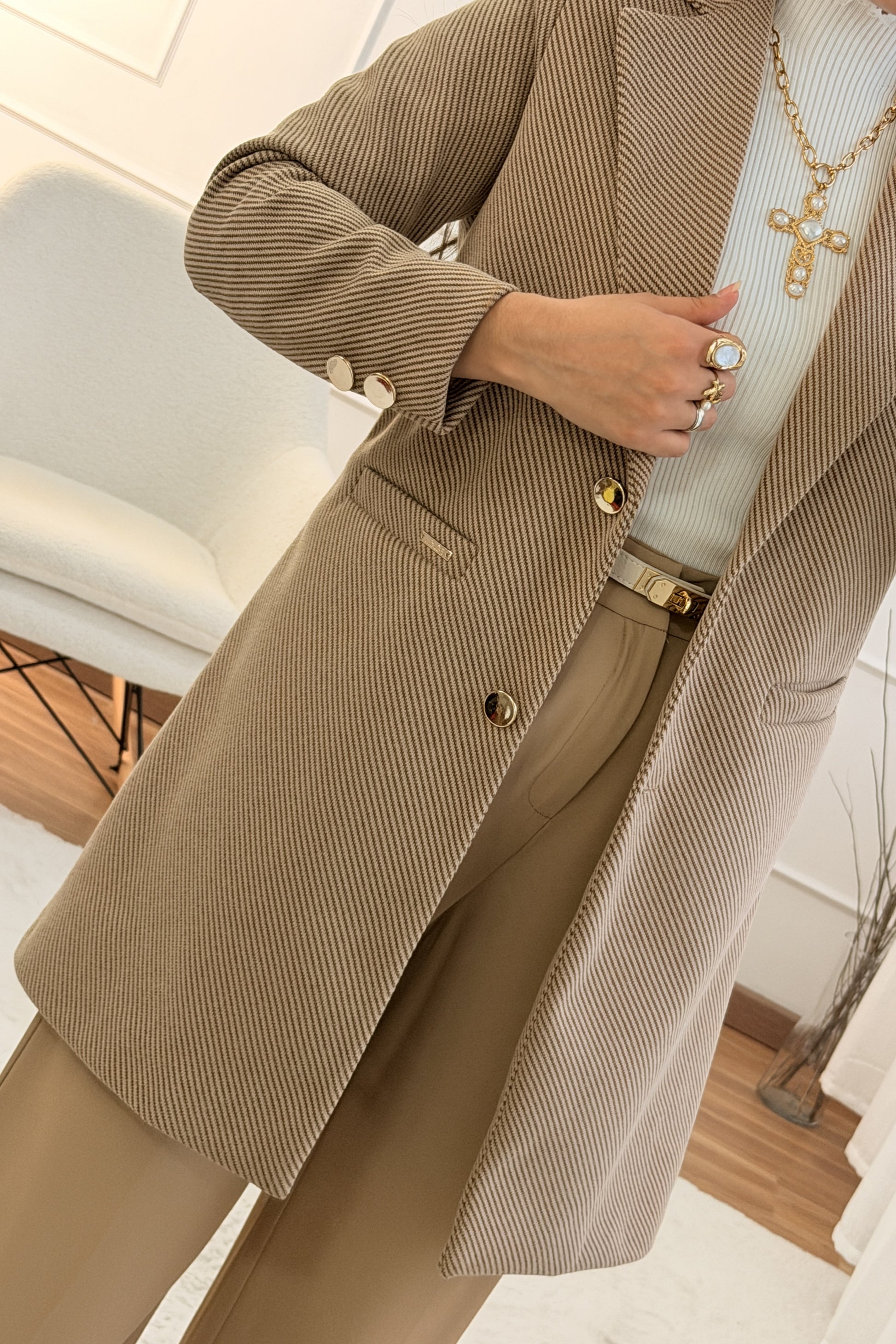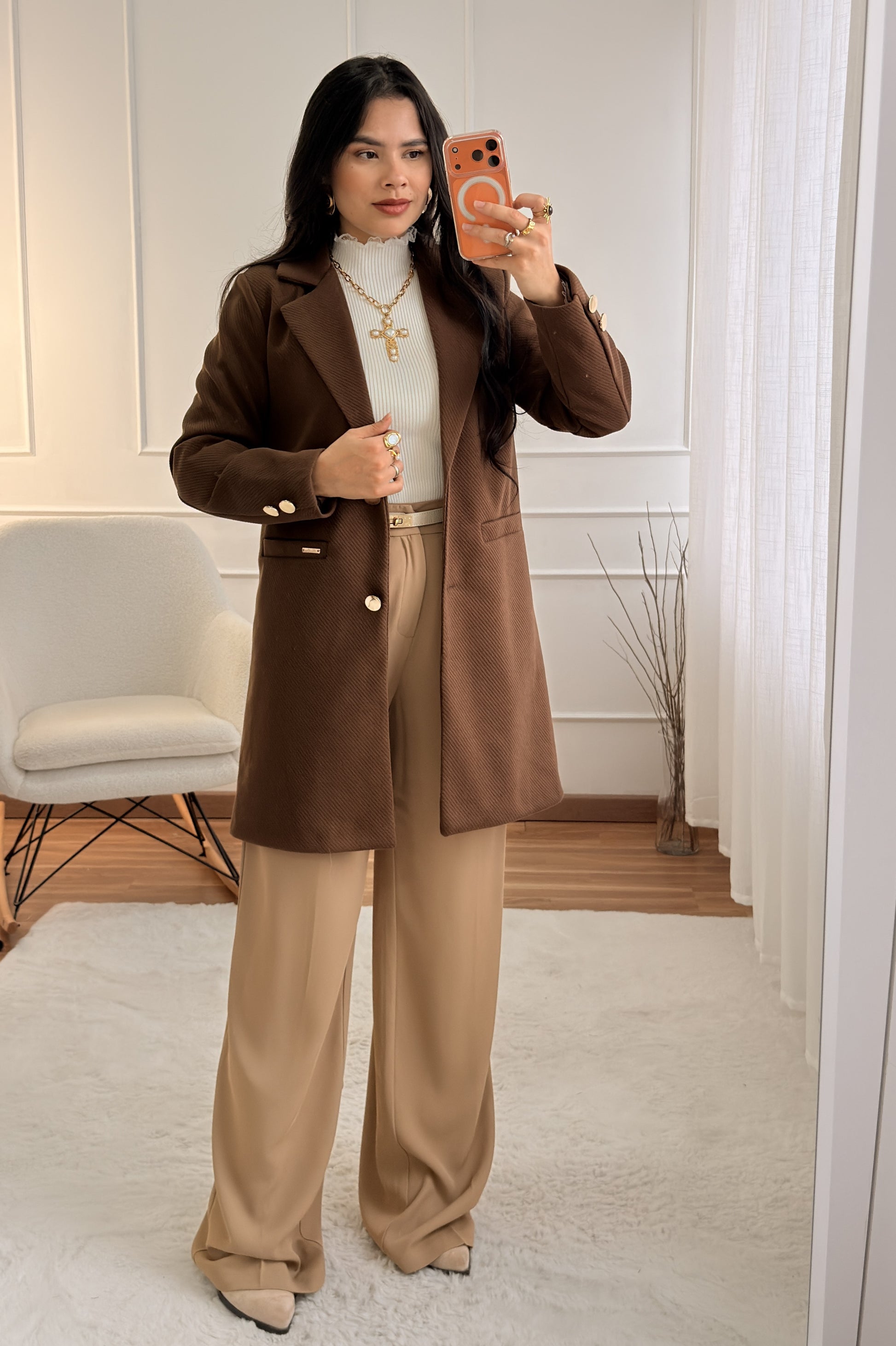 Este casaco é o must-have para um look elegante! O corte alongado (oversize) é super sofisticado e perfeito para o Outono/Inverno.