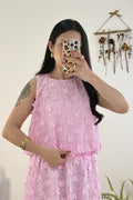 Referência da modelo: 1,59m de altura e 53kg — está a usar o tamanho S.