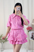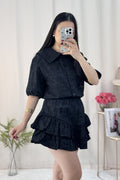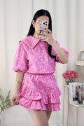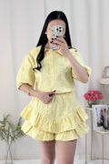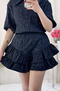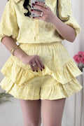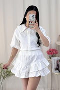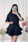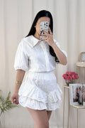 Um look feminino, elegante e confortável! A camisa tem um corte delicado com mangas volumosas. A saia-calção camadas garantem um movimento lindo! ✨