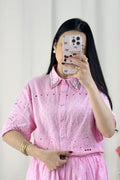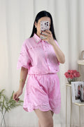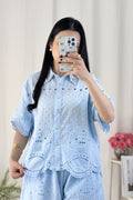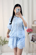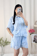 ✨ Este conjunto bordado é o equilíbrio perfeito entre delicadeza e elegância. 💙 Super fresco, com elástico na cintura para um ajuste confortável!