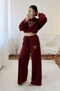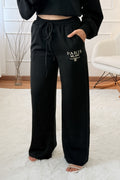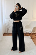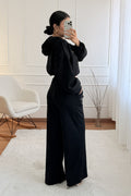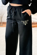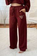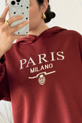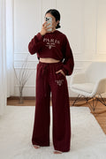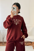Conjunto confortável composto por sweatshirt com capuz e estampado com letras “Paris”, e calças com cintura elástica para um ajuste perfeito. Ideal para um look casual e moderno.
