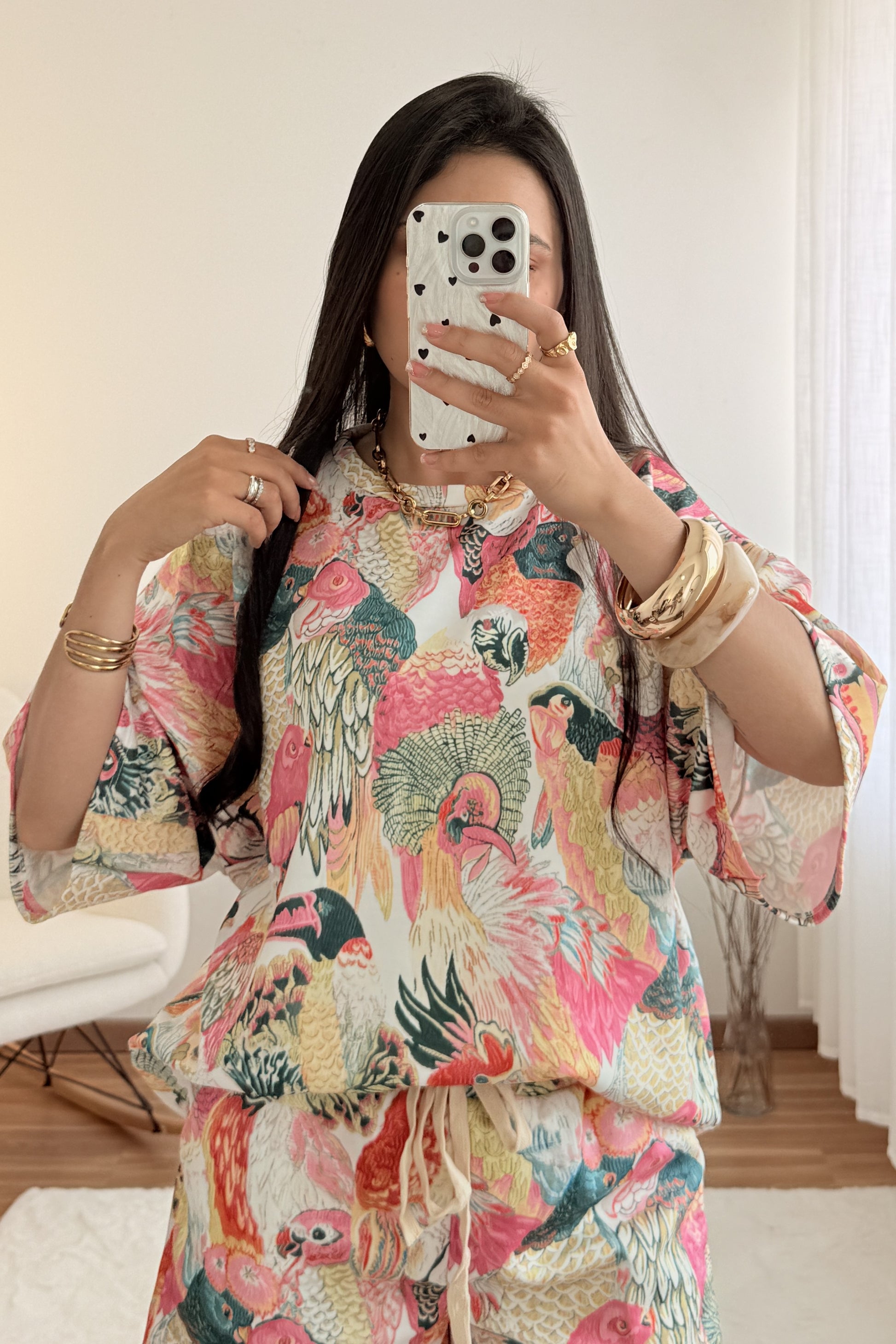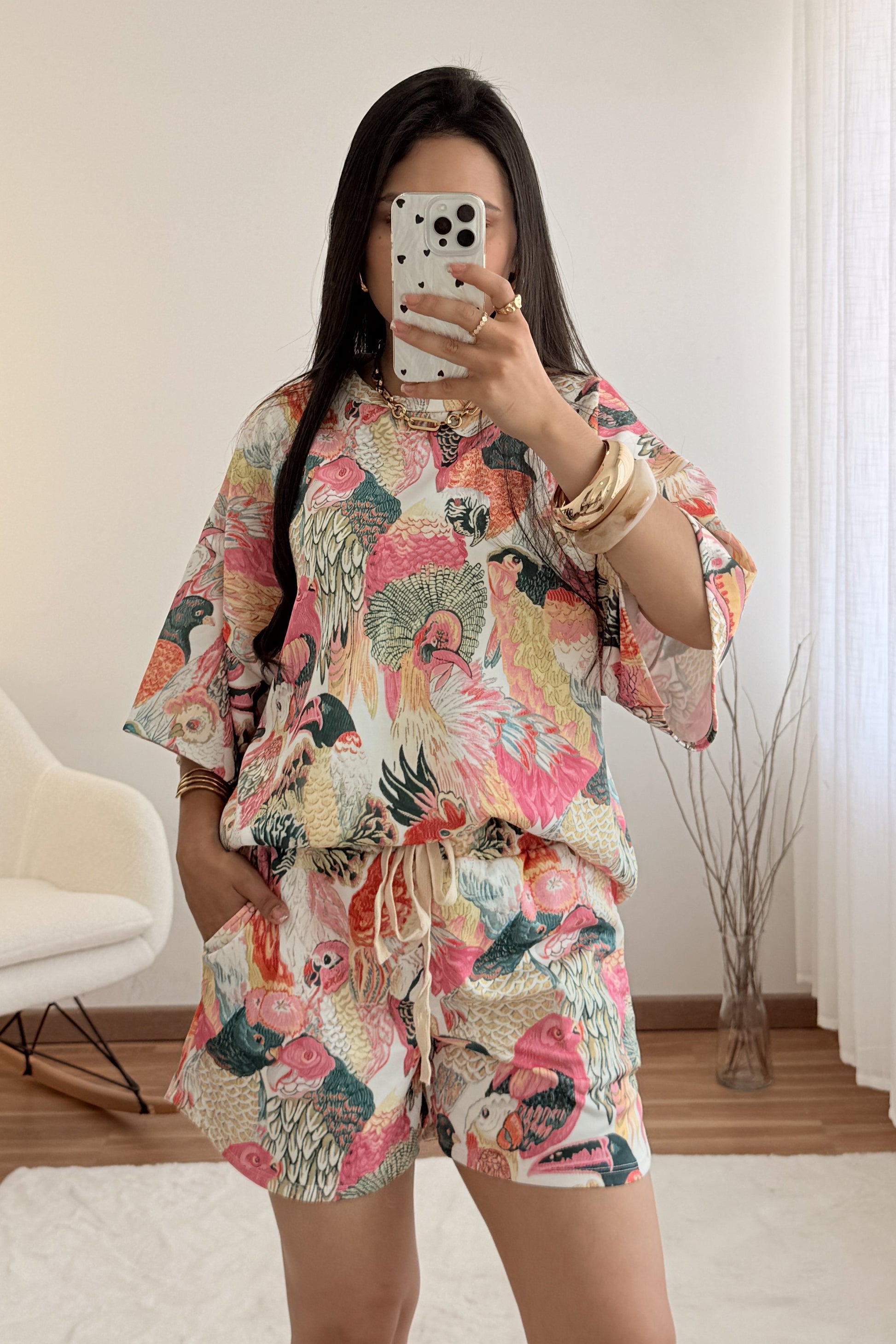 Este conjunto com estampado tropical vai ser o teu melhor amigo neste verão