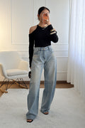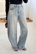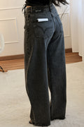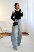 Calças de ganga em modelo balloon fit, com corte ligeiramente arredondado e descontraído, garantindo conforto e estilo. Os detalhes em aplicações de strass ao longo das pernas adicionam um brilho sofisticado, ideal para elevar o visual casual com um toque moderno e glamoroso.
