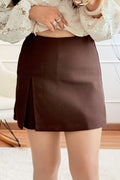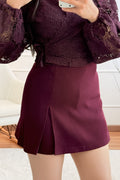 Saia-calção minimalista com corte estruturado e detalhe frontal subtil que acrescenta movimento e estilo. O design clean e versátil permite múltiplas combinações, desde looks casuais a coordenados mais sofisticados. Uma peça prática e elegante, perfeita para destacar a silhueta com modernidade e conforto.