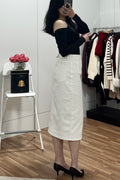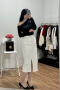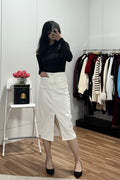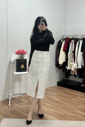 Saia de ganga da queen hearts com bolsos à frente e racha.
