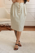 Saia midi confeccionada em tecido misto linho.