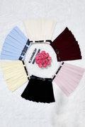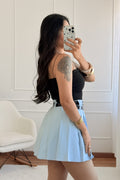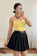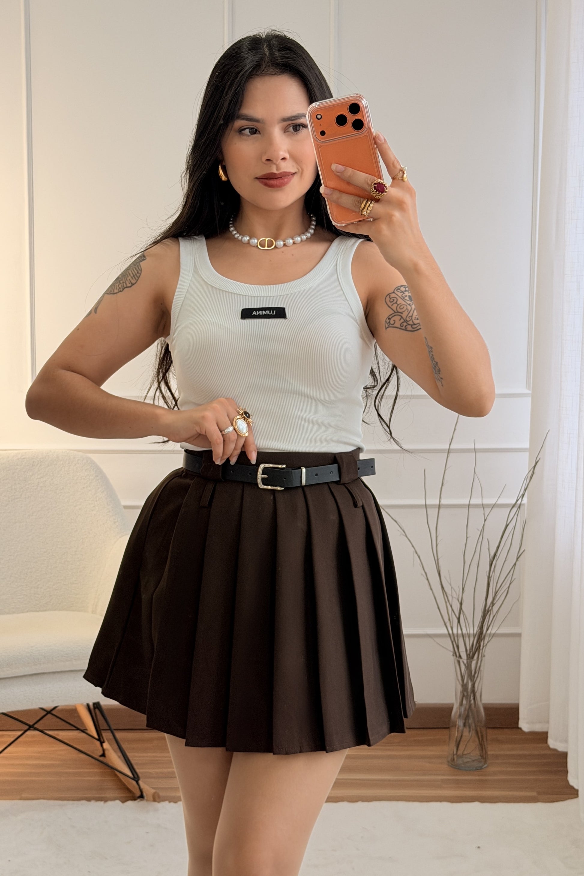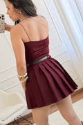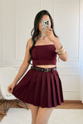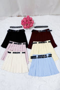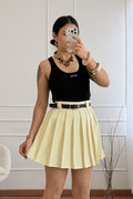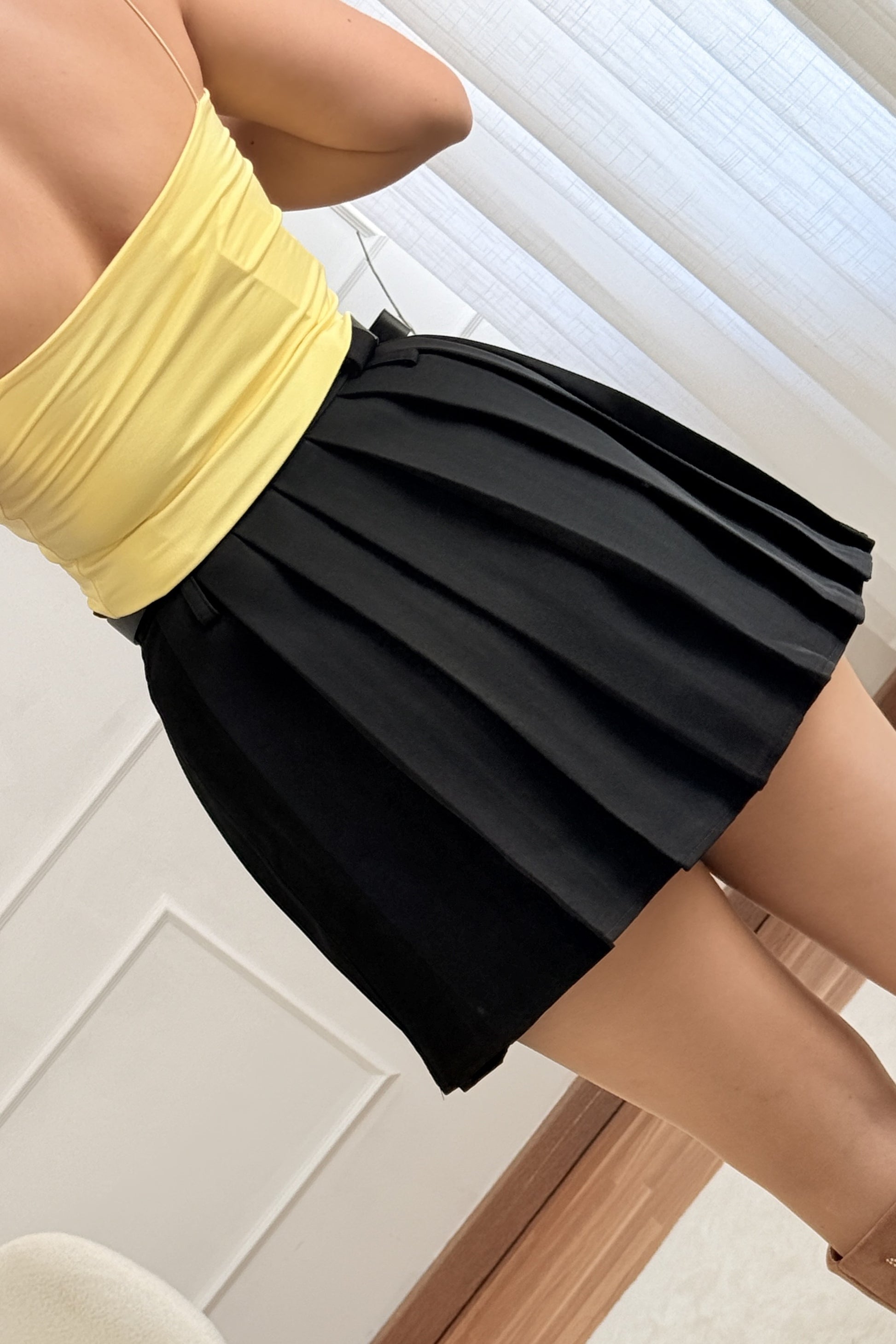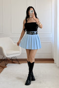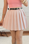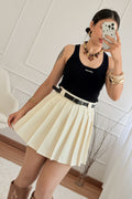 Esta saia plissada curta vem com dois cintos, permitindo-lhe escolher a combinação que mais gosta."
