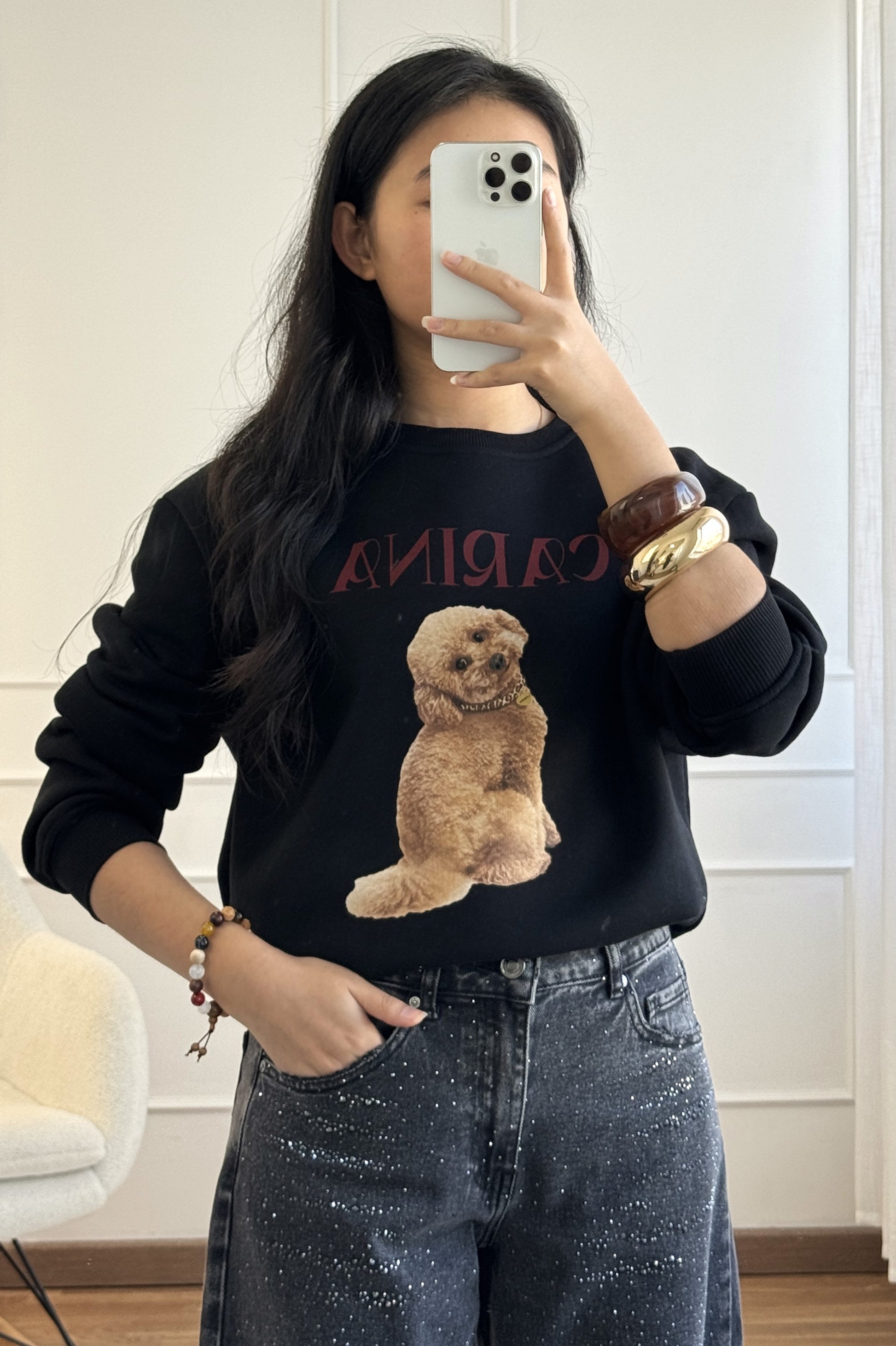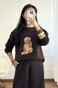 Sweatshirt confortável e quentinha, em tecido grosso com interior suave e afelpado. Estampa adorável de cãozinho com lettering “CARINA”, que adiciona um toque moderno e divertido. Corte descontraído com ombros descaídos e caimento solto. Punhos e bainha em malha canelada para um ajuste aconchegante.