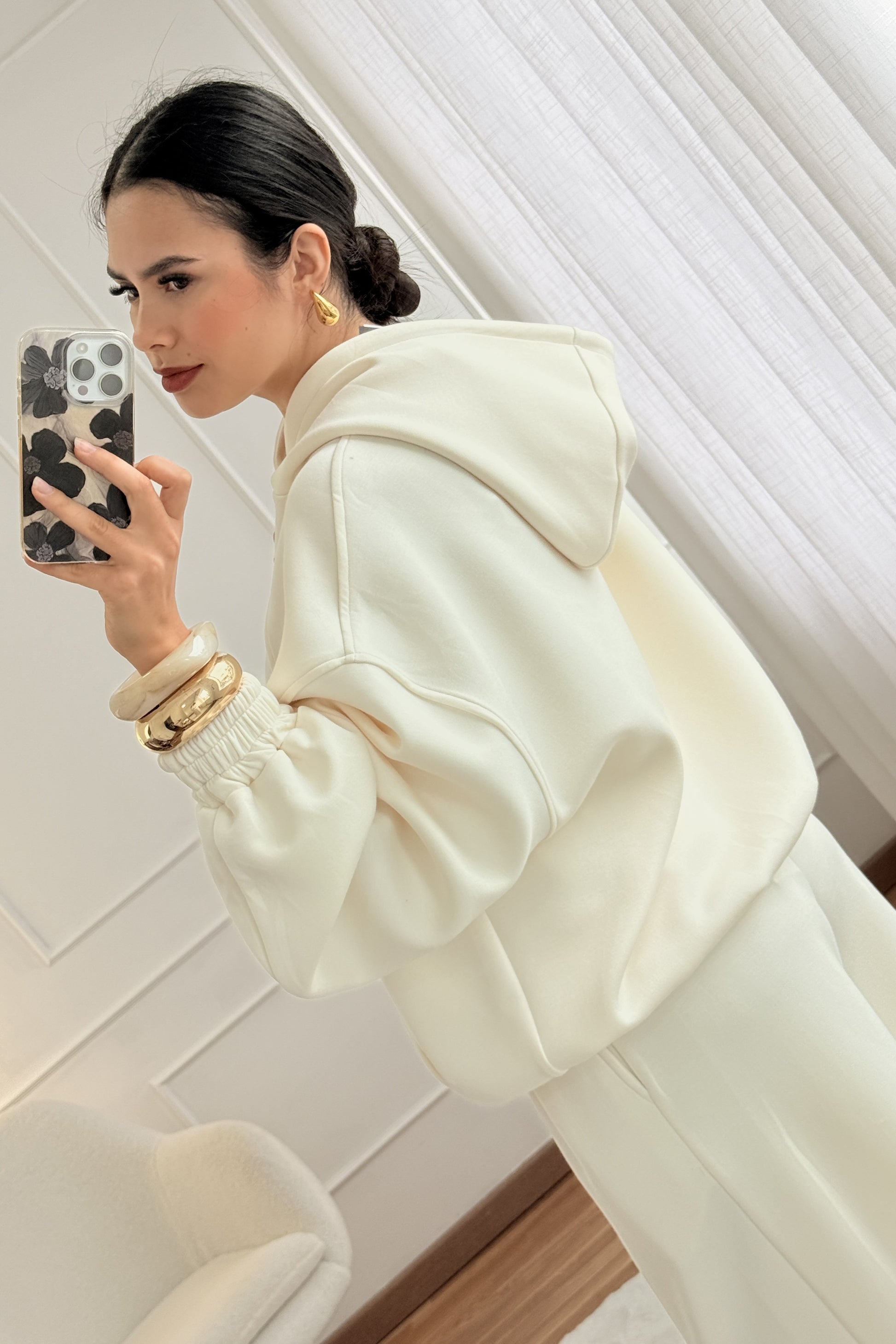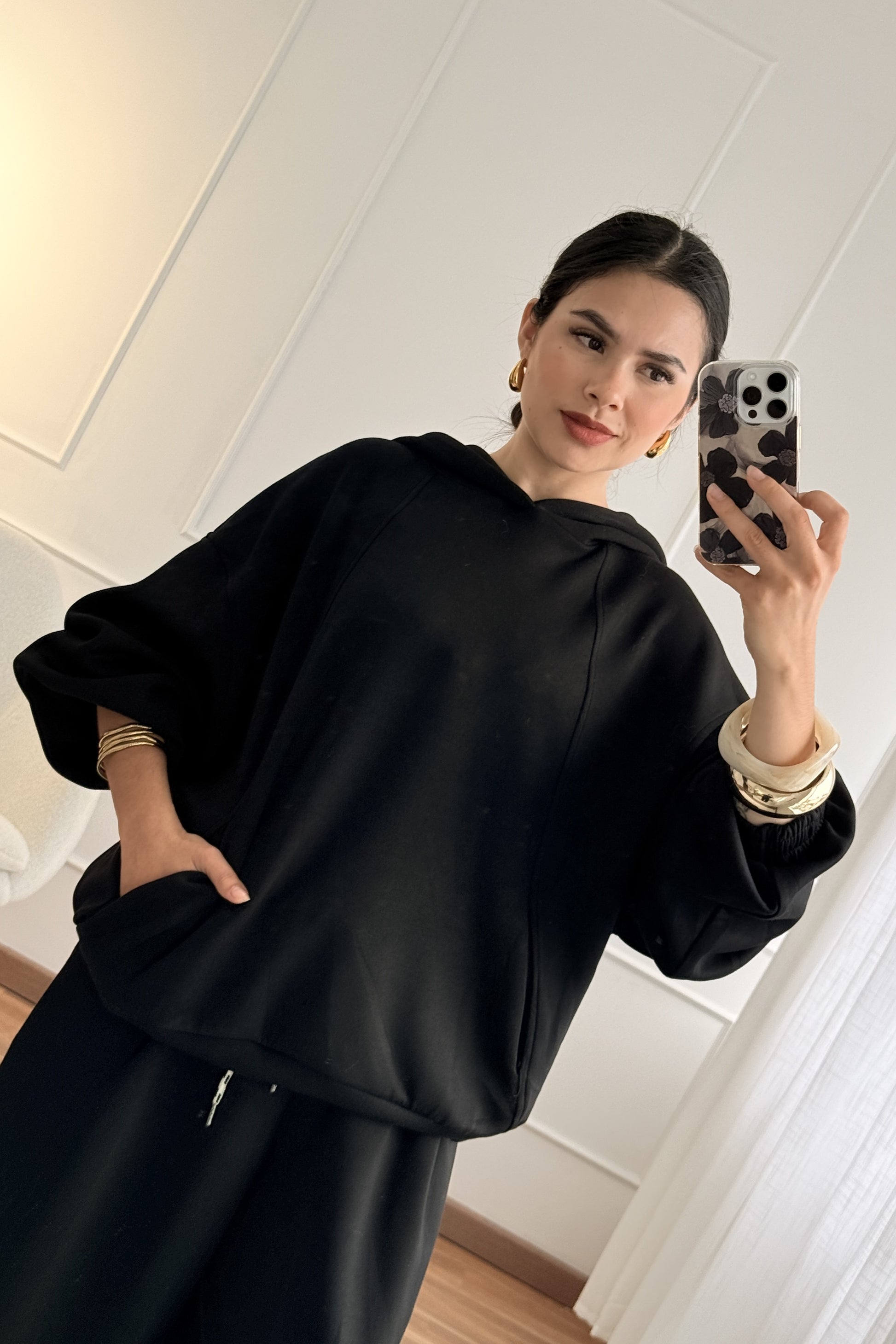 Sweatshirt com capuz, com pinças frontais. Bolsos à frente. Corte regular, disponível em tamanho ÚNICO.