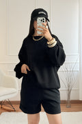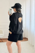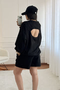 Esta sweat oversized combina conforto e estilo de forma descontraída. O detalhe das costas abertas em formato arredondado adiciona um toque moderno e feminino à peça. As mangas largas com caimento solto contribuem para uma silhueta fluida e elegante. Confeccionada em tecido macio e estruturado