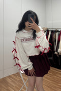 Sweat da mochy curta com laços nas mangas, super giro e confortável.