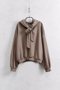 Sweat em mistura de algodão. Detalhe de cordão ajustável. Capuz nas costas. Tamanho único, com ajuste regulável.