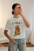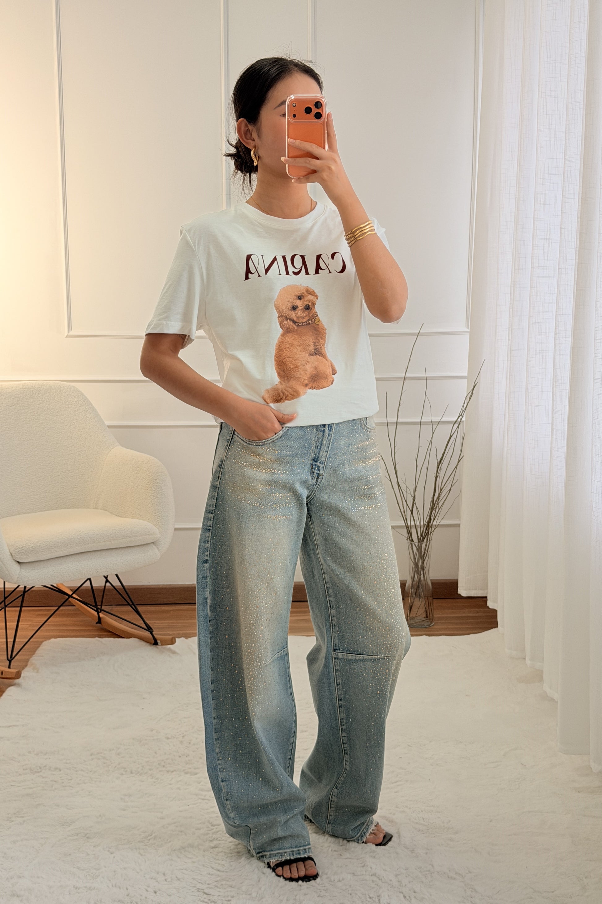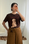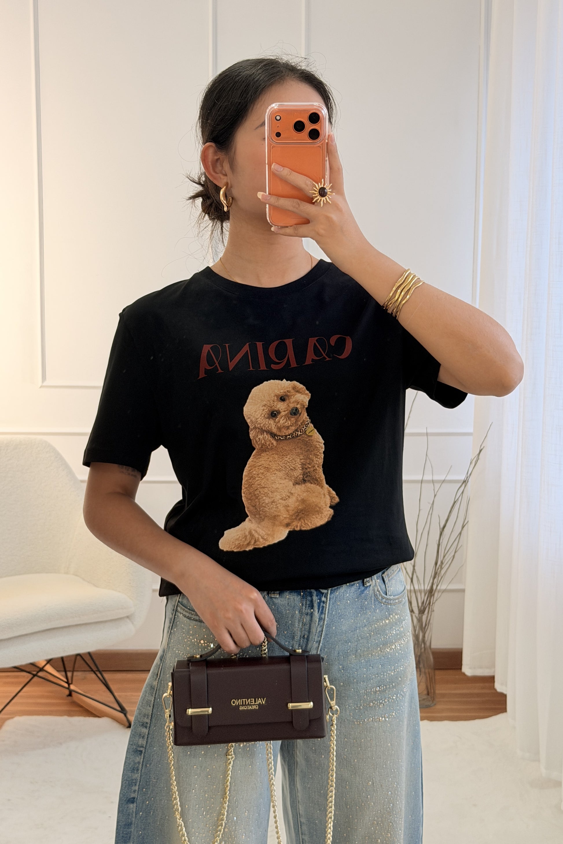 Com uma estampa fofa de cãozinho e corte descontraído, é perfeita para o dia-a-dia e combina com todos os tipos de casacos — desde blazers até jaquetas ou sobretudos.
