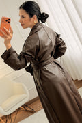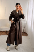 Trench coat longo em napa com cinto
