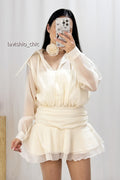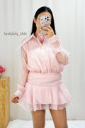 Este vestido curto de organza é a escolha perfeita para quem busca um visual sofisticado e cheio de charme. A leveza e a delicadeza do tecido organza criam um efeito etéreo e encantador, enquanto a flor decorativa adiciona um toque de feminilidade e elegância. O melhor de tudo é que essa flor pode ser amarrada tanto no pescoço quanto na cintura, permitindo que você personalize seu look de acordo com seu estilo e preferência.