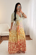 Um vestido fluido, com brilho subtil e um toque de glamour
