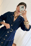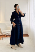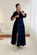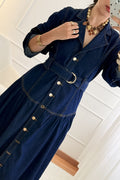 Vestido Comprido em Ganga com Cinto