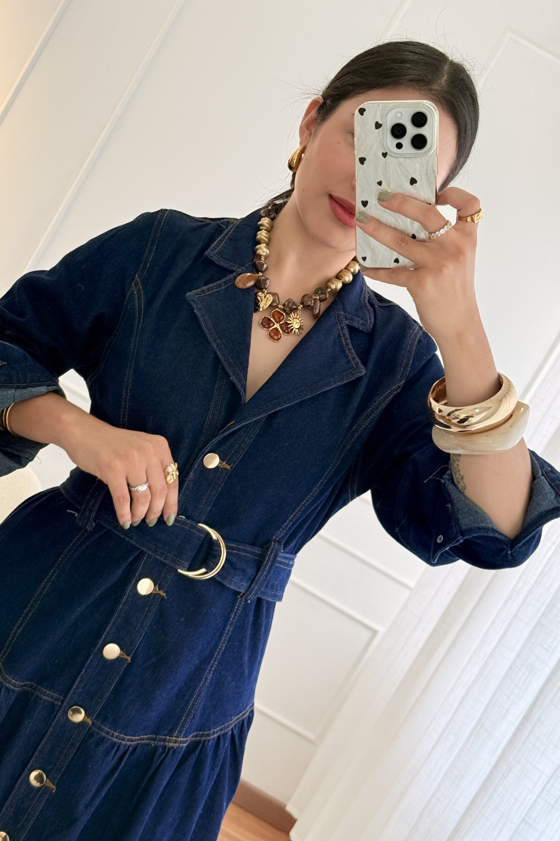 - A modelo mede 1,59m, pesa 53kg e está a usar o tamanho S
