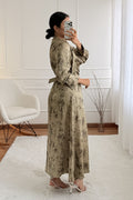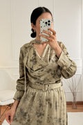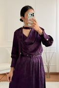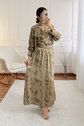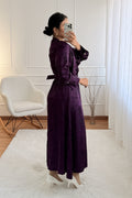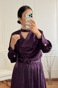 Este vestido comprido feminino apresenta um design sofisticado com decote diferenciado e gola integrada, criando um visual moderno e elegante. O cinto ajustável realça a cintura, proporcionando um caimento impecável. As mangas longas com punhos estruturados acrescentam um toque refinado