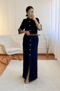 Com fecho de botões ao longo da frente e uma racha subtil, proporciona movimento e elegância em qualquer ocasião.