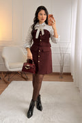 Vestido estilo camisa com parte superior às riscas e laço elegante no pescoço