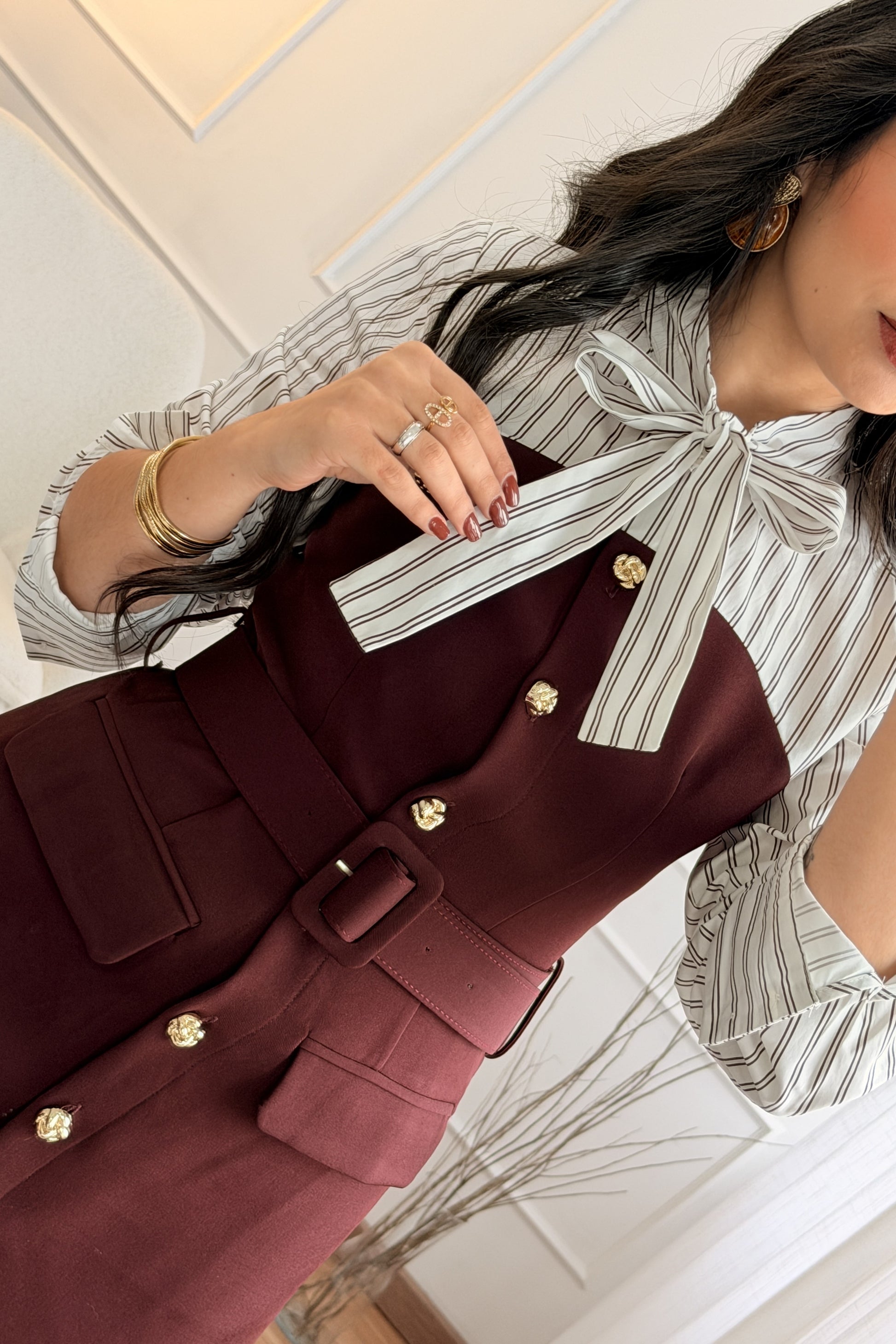 Cinto ajustável na cintura para melhor definição da silhueta