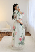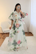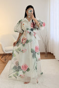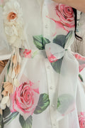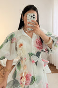 Leve e romântico, com mangas bufantes e estampa floral. perfeito para ocasiões especiais e dias primaveris.