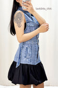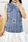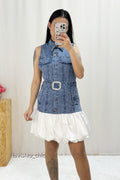 Feito em ganga, este vestido combina um design sofisticado com um toque despojado. A saia balonê dá volume e movimento à peça, enquanto o cinto com brilho marca a cintura, trazendo ainda mais charme ao look. Sem mangas, é perfeito para compor produções versáteis e estilosas!