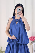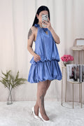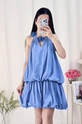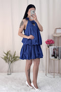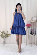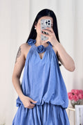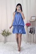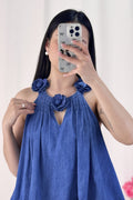 Um vestido leve, fresco e cheio de charme! Este modelo em ganga com efeito balão e detalhe de flores nos ombros é simplesmente apaixonante!