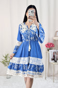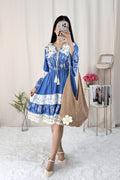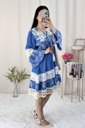 Vestido em A com mangas flare e cintura ajustada com elastano.