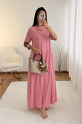 Vestido maxi estilo t-shirt com corte fluido e manga curta LUMINA