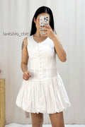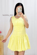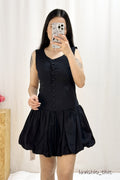 Este vestido encantador com alças finas é perfeito para quem busca um visual moderno e feminino. Seu design apresenta uma saia em balão, que cria um look único e superestiloso. Na frente, uma delicada fileira de botões decorativos adiciona um toque de sofisticação e charme. Ideal para ocasiões especiais ou para um look casual cheio de personalidade, ele vai fazer você se destacar por onde passar.