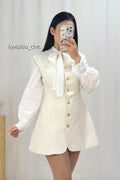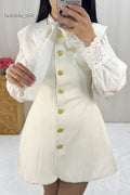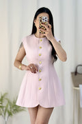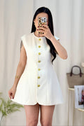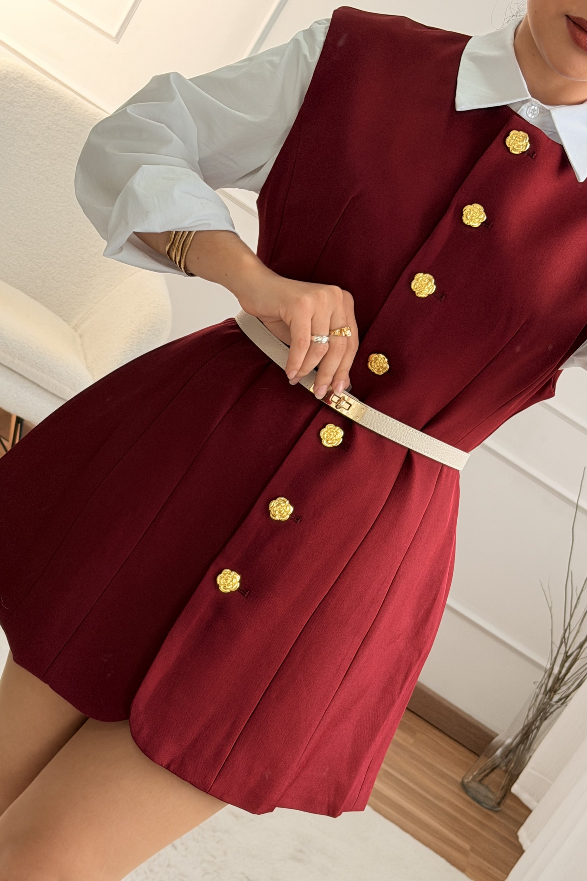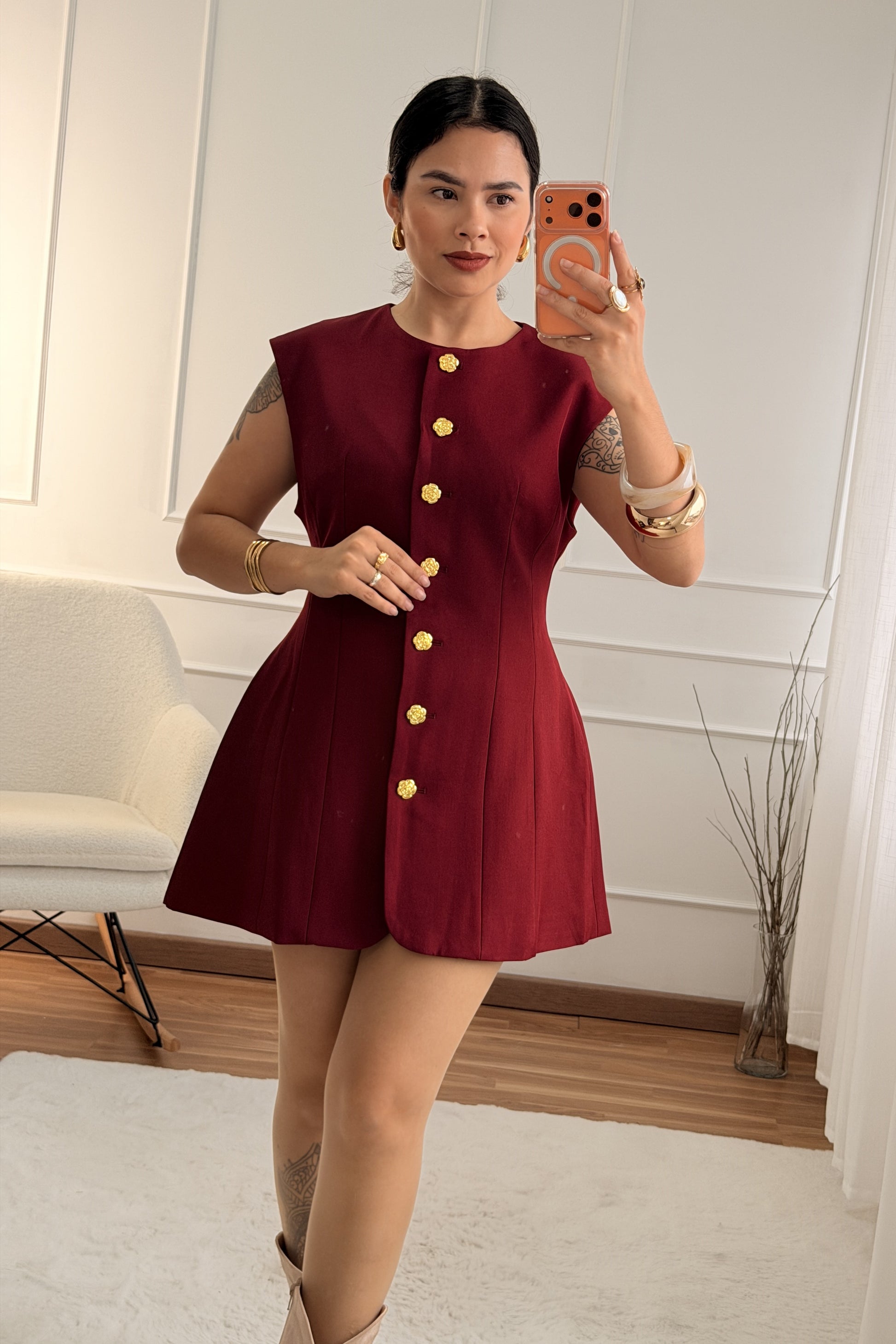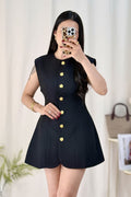 Este vestido colete com botões dourados combina elegância e modernidade! 🌟 Perfeito para destacar a silhueta e dar um toque sofisticado ao teu look, seja para o dia a dia ou ocasiões especiais.