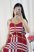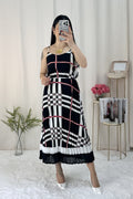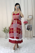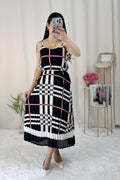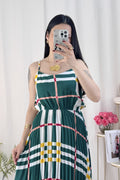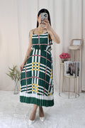✨ Este vestido plissado tem um padrão vibrante e um corte fluido que garante conforto e sofisticação! 💖