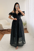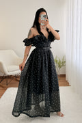 Referência da modelo: 1,59m de altura e 53kg. Veste tamanho S/M.