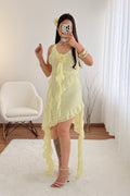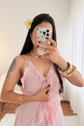 Leveza, romance e charme em cada detalhe! Este vestido com folhos é perfeito