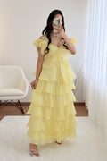 Um verdadeiro conto de fadas em forma de vestido! 💛👑Com folhos, caimento leve e um toque romântico