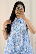 Vestido sem mangas com ombros à mostra, colarinho elegante e botões frontais delicados. Textura floral 3D, corte fluido e saia com volume estilo balão. Um look romântico e sofisticado para qualquer ocasião!