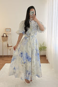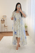 Vestido longo acompanhado de um top forrado e um cinto, combinando elegância e praticidade.